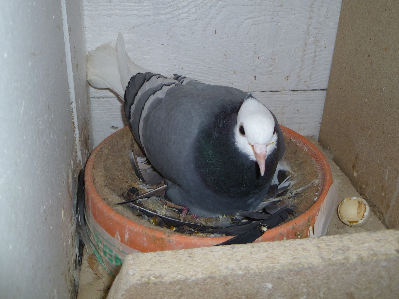 | https://upload.alloforum.com/28925/PLFFNS6H un de mes mâle sur le nid avec ses petits mais que l'on ne voit pas sur la photos (juste une coquille à côté